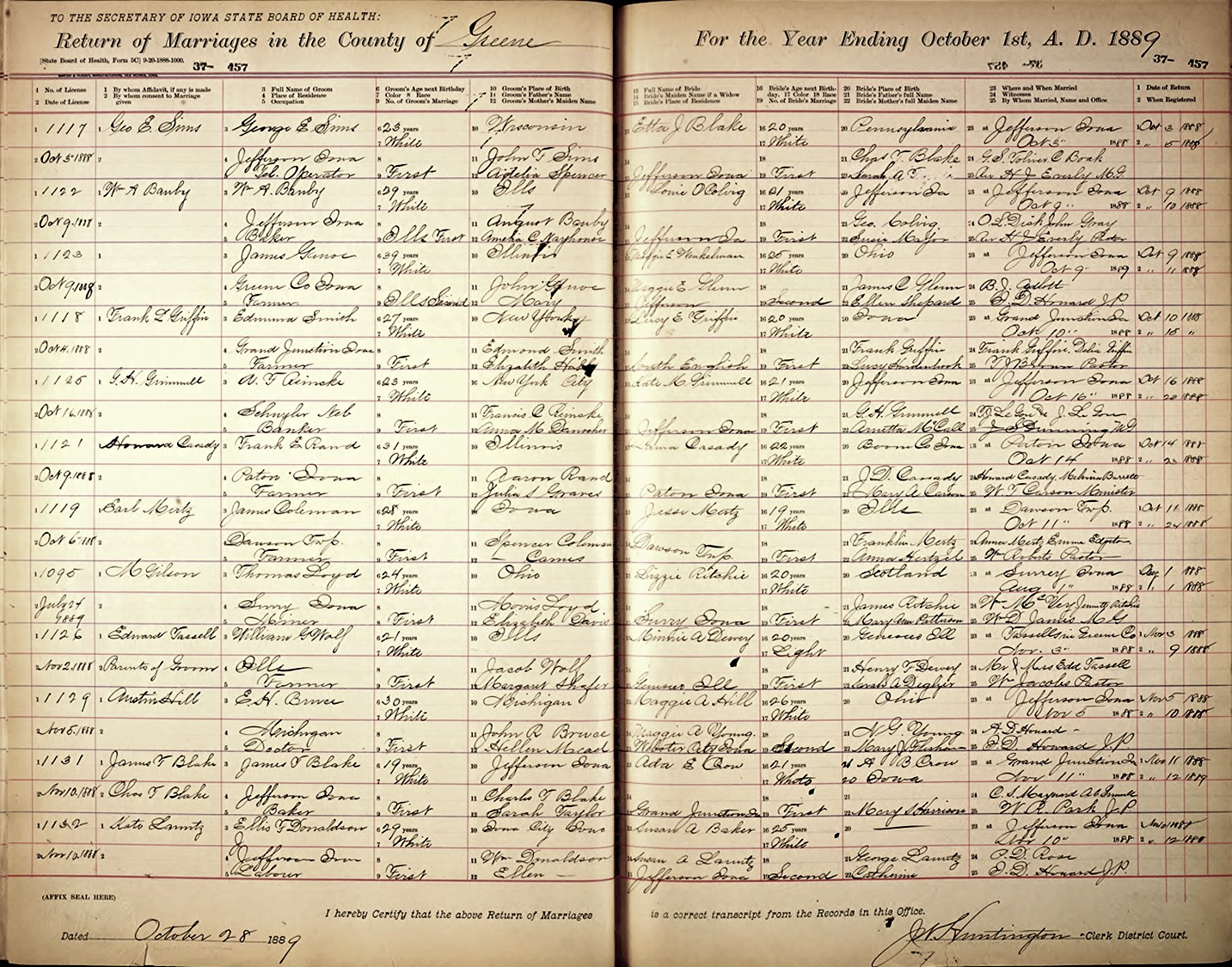 George E. Sims and Loretta Jane "Etta" Blake were married October 3, 1888, in Jefferson, Greene Co., IA.