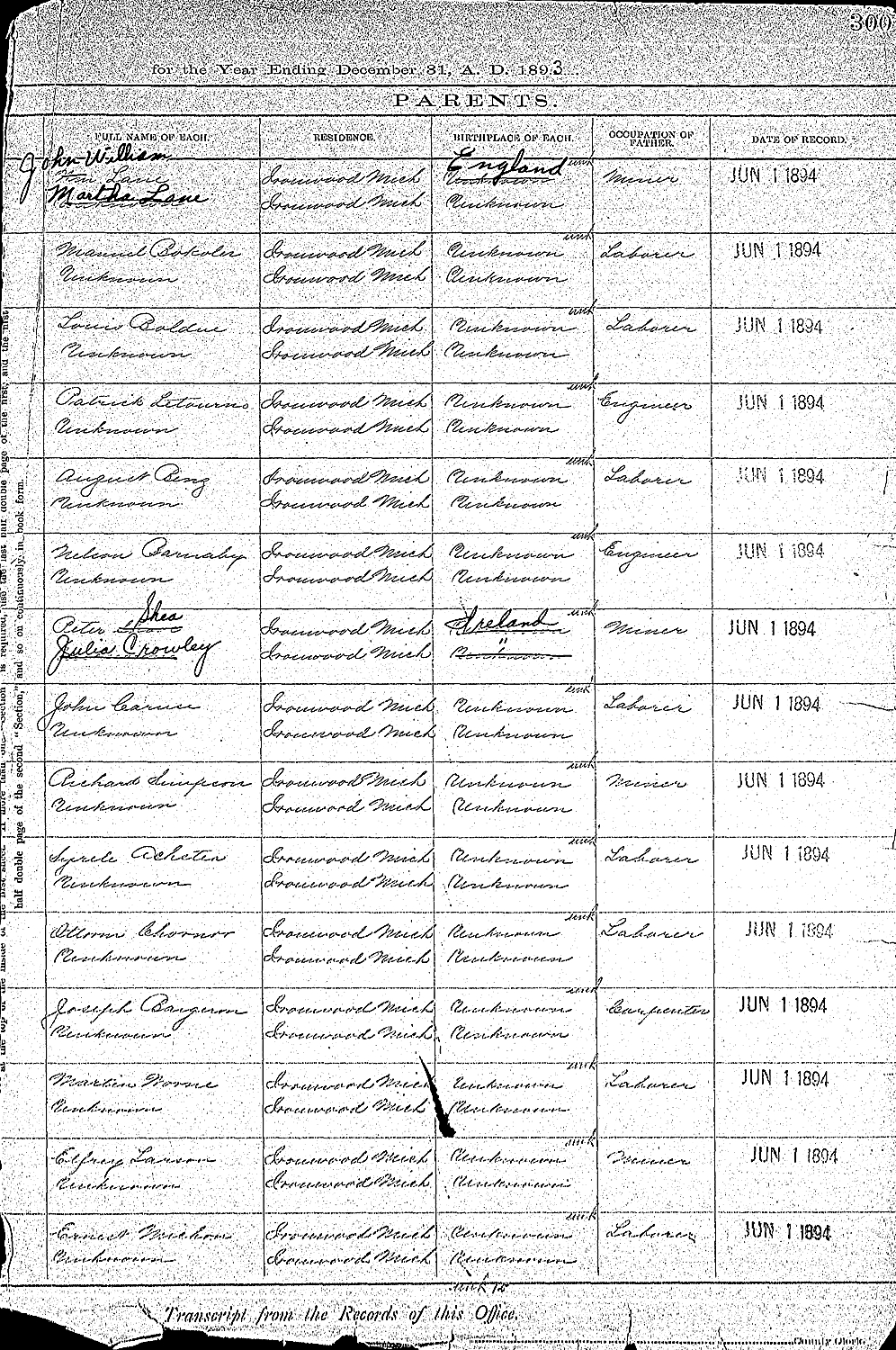 Narcisse Adjutaine Martin dit Barnaby was born November 8, 1854, in Pierreville, Quebec, Canada.