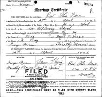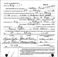James B. "Jim" Keyes and Hazel Pettie Harris were married April 14, 1936, at Saint Alphousus Church, Seattle, King Co., WA.