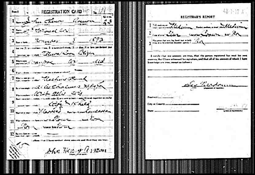 The 1918 WWI Draft Registration Form showed John Henry Armon was married and living in West Allis, WI and working for Allis Chalmers Co.