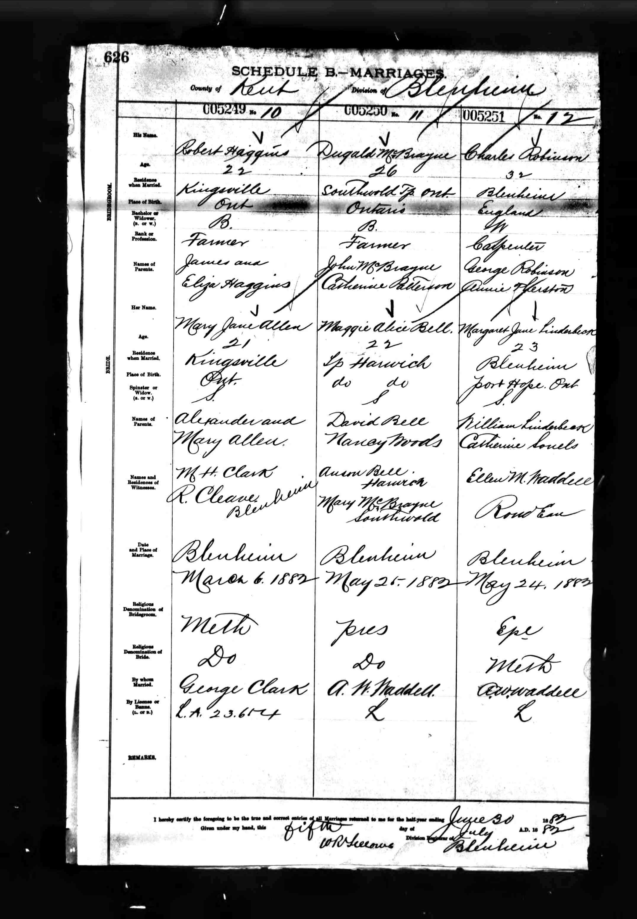 Charles and Margaret were married May 24, 1882 in Blenheim, Kent Co., Ontario, Canada.