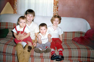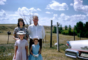 Sons: Jim Abbey, Alan Abbey, Alice (Herman) Abbey, and Gale Abbey, Beulah, Mercer Co., ND, 1959. Photo courtesy of Kay Koslan.