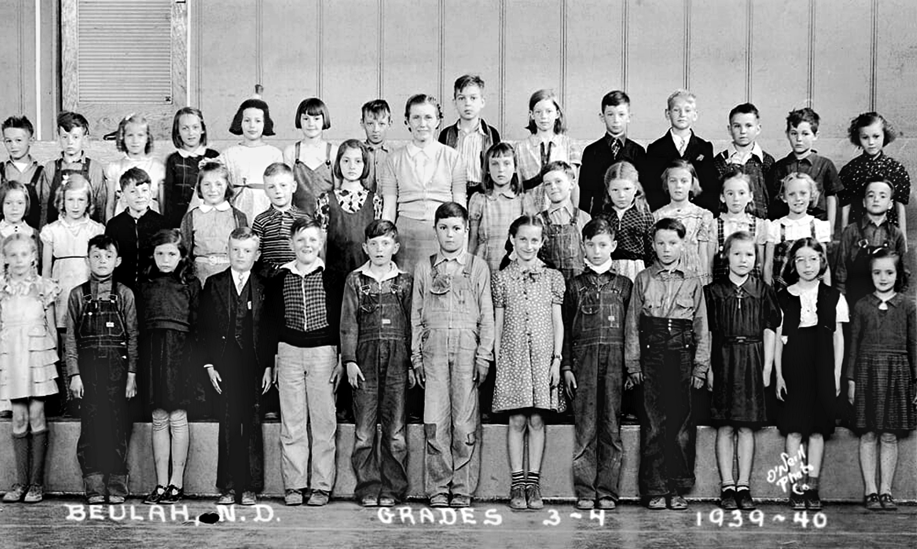 Grades 3 - 4, 1939 - 1940 Marilyn Abbey, Grade 4, top row, 6th from left, and Lenore Abbey, Grade 5, middle row, 6th from left. Photo courtesy of Kay Koslan.