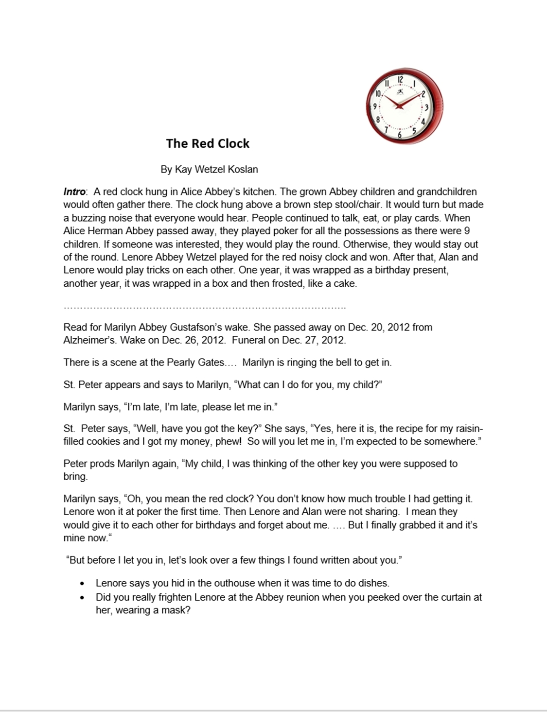 Marilyn Adell (Abbey) Gustafson d ied December 20, 2012, at Knife River Care Center, Beulah, Mercer Co., ND, at age 81. Buried in Deapolis Cemetery, Mercer Co., ND.