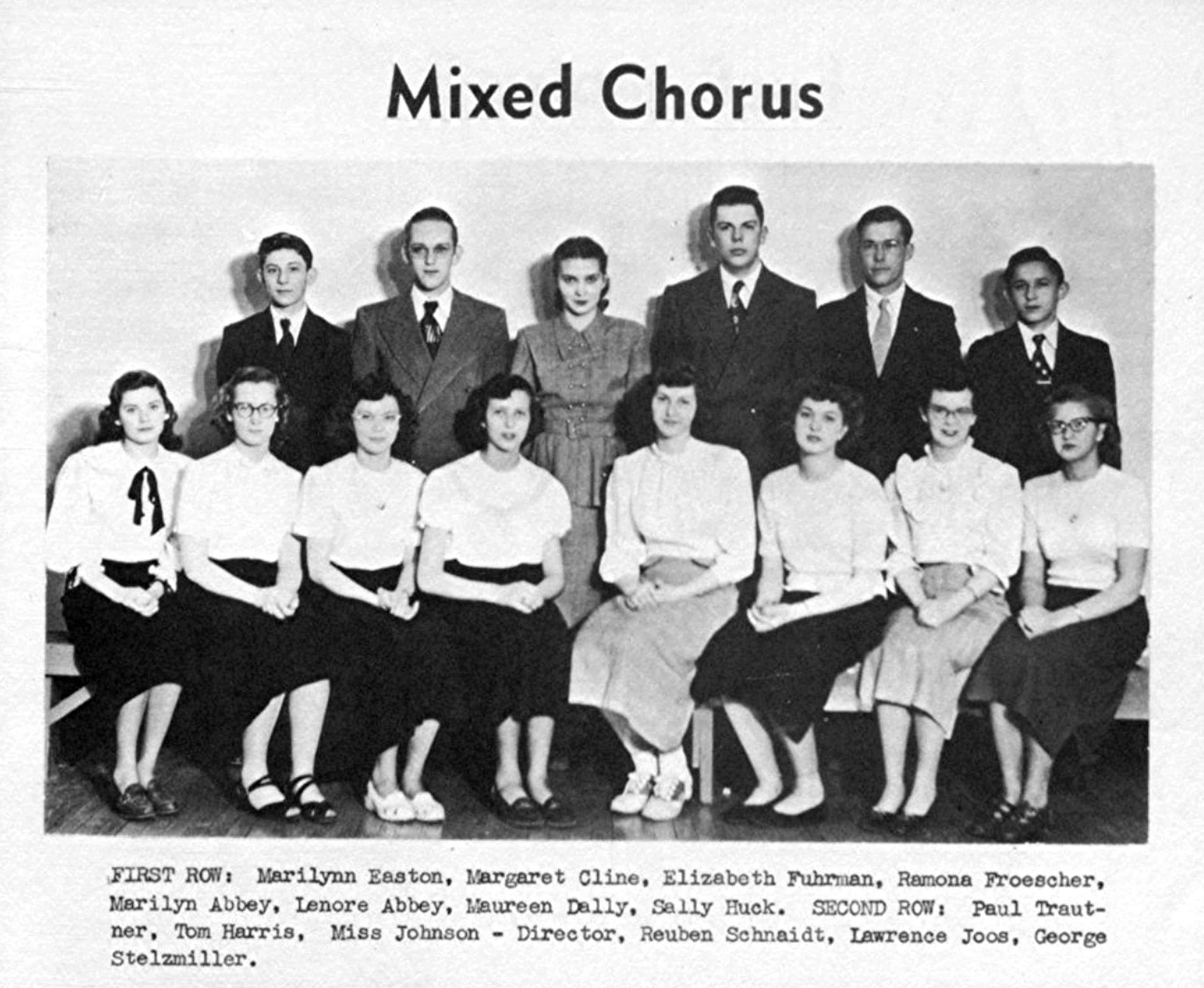 Lenore Shirley Abbey and Marilyn Adell Abbey participated in the Pep Band, and also the Mixed Chorus, in Beulah High School, Beulah , Mercer Co., ND, 1949.