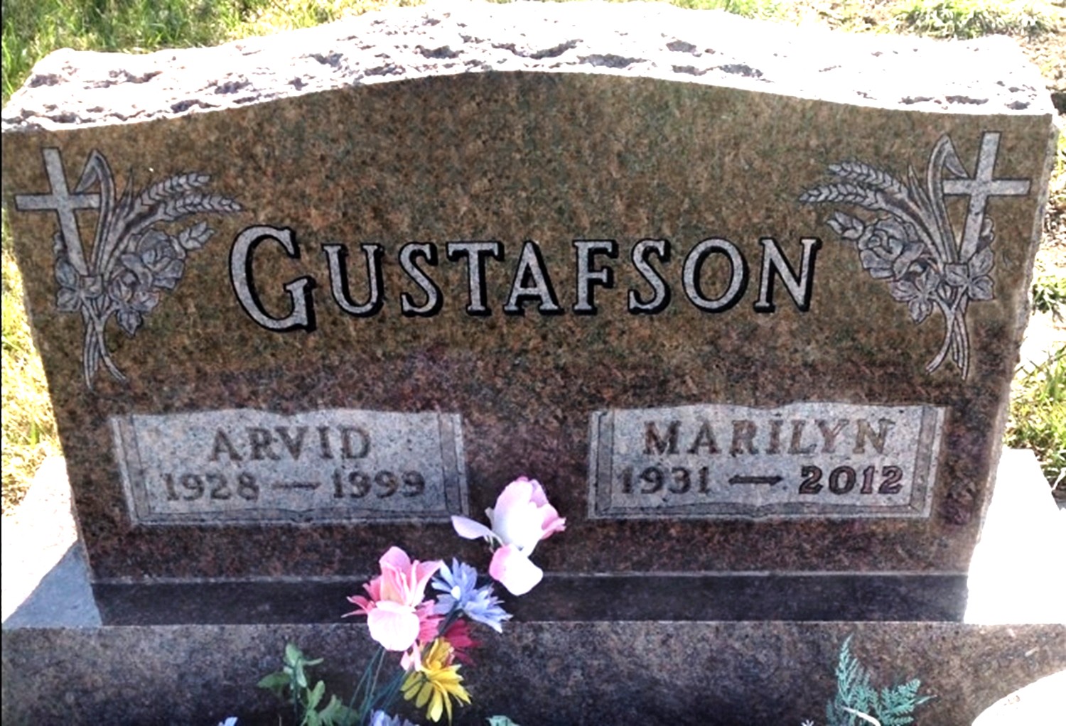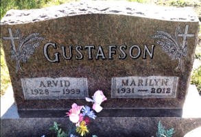 Arvid Rudolf Gustafson and Marilyn Adell (Abbey) Gustafson are buried in Deapolis Cemetery, Mercer Co., ND. Thanks to Find-A-Grave for making the image on the left available.