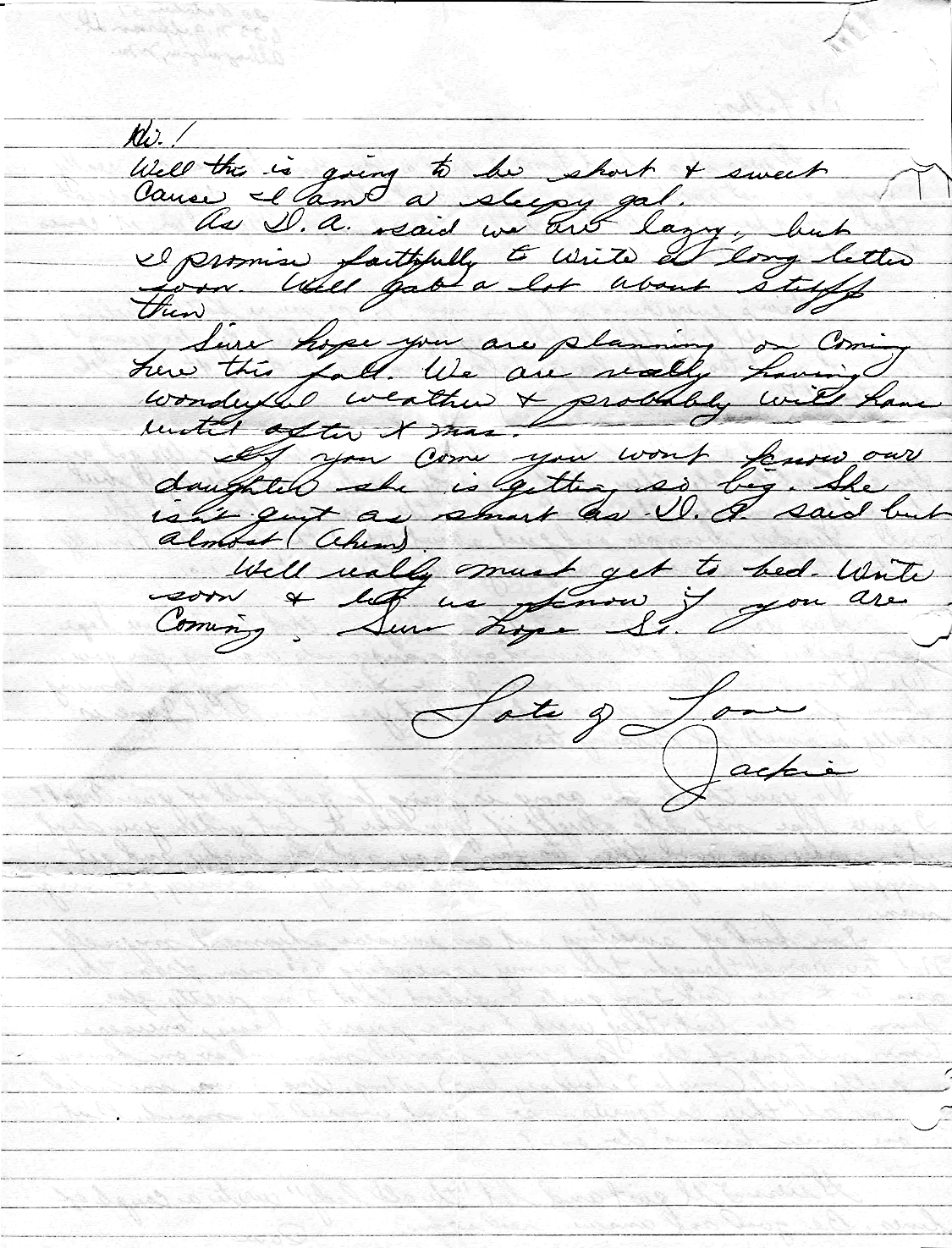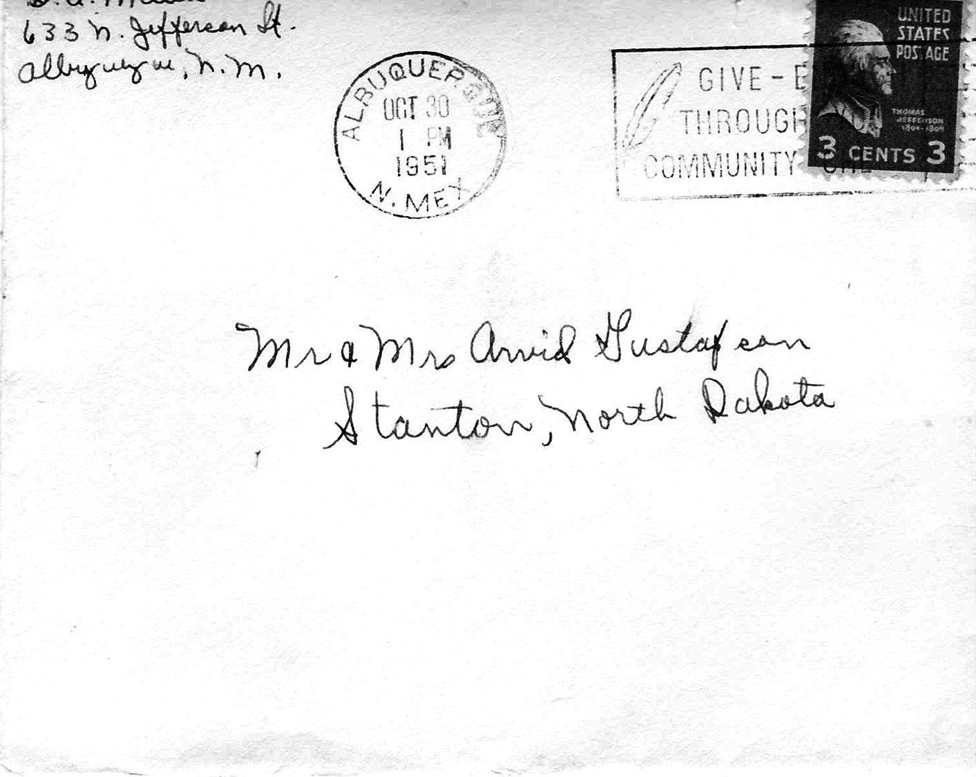 David Allan "Dave" Miller and Jacqueline Cordelia "Jackie" (Fiergola) Miller wrote this letter to Arvid Rudolf Gustafson and Marilyn Odell (Abbey) Gustafson on October 30, 1961 . Photo courtesy of Kay Koslan.