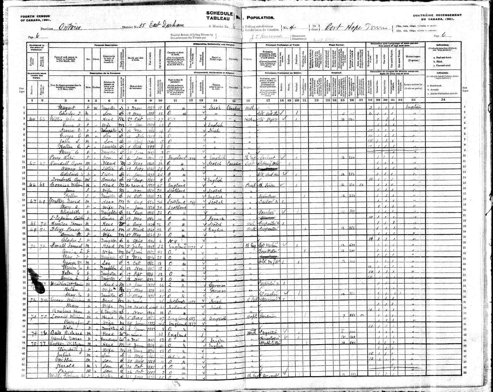 In 1901, she is residing in Port Hope, Durham East, Ontario, Canada; Occupation: