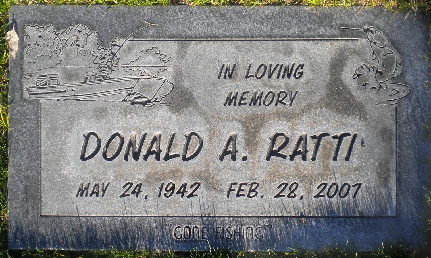 Donald Al "Don" Ratti is buried in Phoenix Memorial Park and Mortuary, Phoenix, Maricopa Co., AZ. Thanks to Find-A-Grave for making this image available.