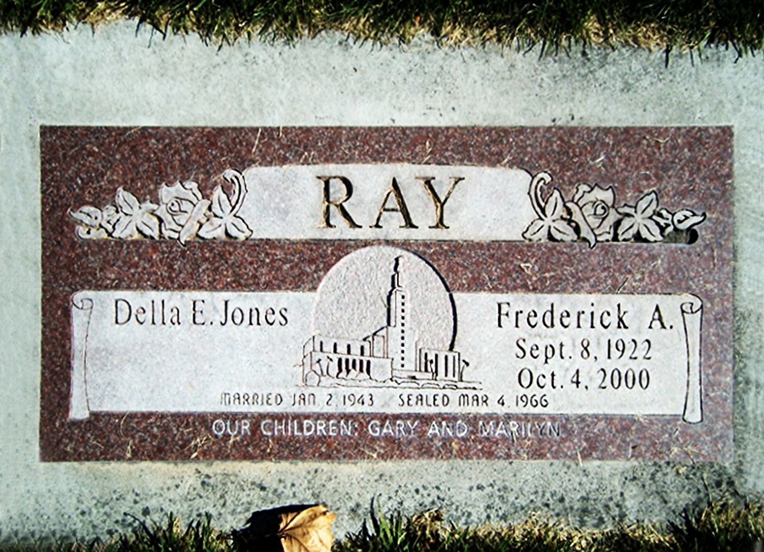 Frederick Arthur "Fred" Ray and Della Edith (Jones) Ray are buried in Orem City Cemetery, Orem, Utah Co., UT. Thanks to Find-A-Grave for making this image available.
