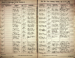 Joseph Earl "Joe" Davis (age 22), a bachelor, and Margaret "Maggie" Leary (about age 20), a maiden, were married February 14, 1875, in Grant Co., WI.