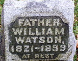 William Henry Watson was born 1821 in Upper Canada, and died August 3, 1899, in Grand Blanc, Genesee Co., MI, at about age 78. Buried in South Grand Blanc Cemetery (a/k/a Halsey Cemetery), Grand Blanc, Genesee Co., MI. He is the son of William Watson , and Anna Hill.