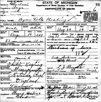 Byron Felix Keating died August 28, 1908, in Sage Twp., Gladwin Co., MI, at age 51 .