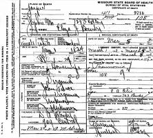 Mattie Collins (Brite) (Friesen) (Crew) (Kiley) (Moss) (Cropley) Kuhn died July 30, 1971, in Reno, Washoe Co., NV, at age 91.