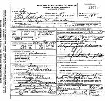 Catherine Cates was born December 25, 1880, in Missouri, and died June 28, 1962, in San Antonio, Bexar Co., TX, at age 81. Buried in Mission Burial Park, San Antonio, Bexar Co., TX. She is the daughter of James Cates of Missouri, and Nancy Eliza Pierce of Virginia. David's mother, Eliza (Pierce) Bowdre was born January 1, 1824, in Virginia, and died March 5, 1912, in Joplin, Jasper Co., MO, at age 88. Buried in Fairview Cemetery, Joplin, Jasper Co., MO.