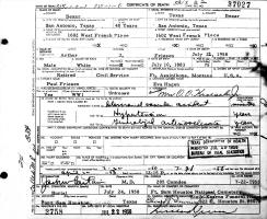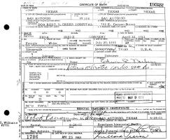 - Jackson Cates "Jack" Friesen: Born October 25, 1907, in San Antonio, Bexar Co., TX; Died July 22, 1971, in San Antonio, Bexar Co., TX (age 63). Buried in Mission Burial Park, San Antonio, Bexar Co., TX. Married about 1937 in San Antonio, Bexar Co., TX, to Irene Moore: Born May 12, 1911, in Pineville, Rapides Parish, LA; Died October 22, 1985, in Mc Lennan Co., TX (age 74).