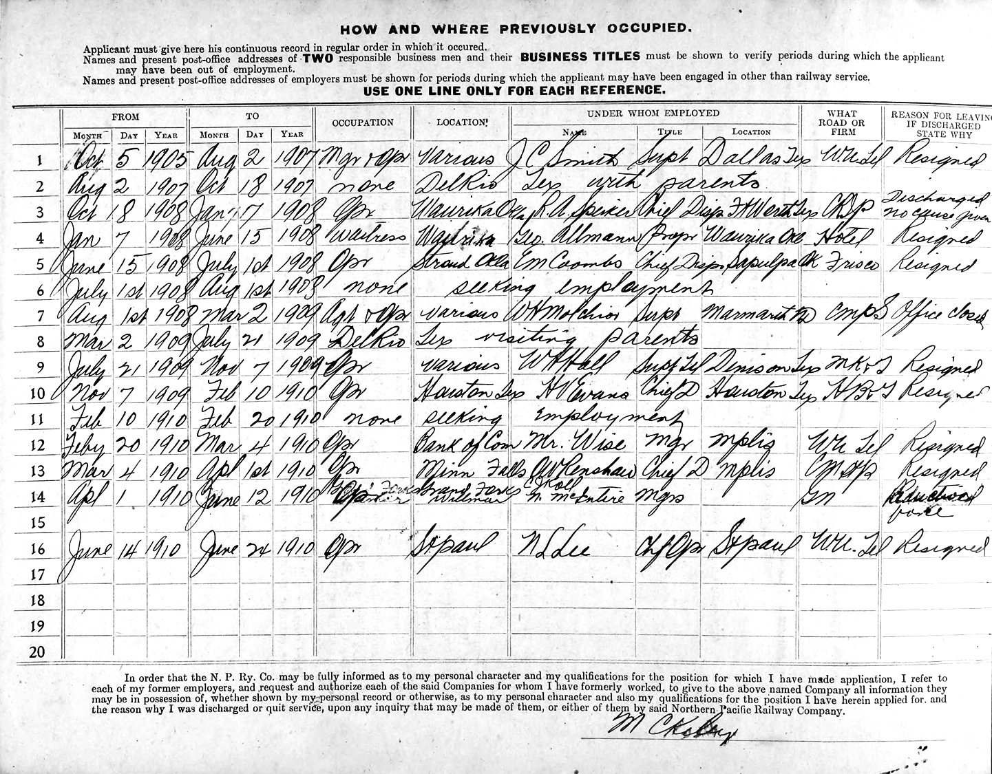 She obtained her first railroad telegraphy position at Sabinas, Mexico, in 1902, and moved there with her son, Carl. She spent three years in northern Mexico, working in Ciudad Porfirio Diaz (now Piedras Negras), Torreon, and Durango. While in Durango in 1903, she became a member of the Order of Railroad Telegraphers (ORT), the railroad telegraphers' labor organization.