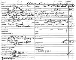 Albert Kuhn was born May 18, 1870, in Tiffin Twp., Seneca Co., OH, and died March 3, 1933, in the Southern Pacific Hospital, San Francisco, San Francisco Co., CA, at age 62. Buried in Mountain View Cemetery, Reno, Washoe Co., NV. He is the son of U. Jacob Kuhn of Lobsann, Sulg., Bas Rhin., France, and Theresa Luisa Burkhart of Baden, Baden-Baden, Baden-Wuerttemberg, Germany.