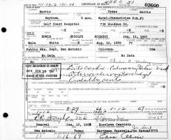 Edwin Rudolph "Eddie" (Friesen) Norbery died January 12, 1967, at Gulf Coast Hospital, Baytown, Harris Co., TX, at age 77. Buried in Roselawn Cemetery, in San Antonio, Bexar Co., TX.