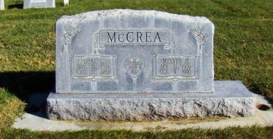 Melvin Harry McCrea and Opal Lorraine (Dearing) McCrea are buried in Filer Cemetery, a. k. a. I. O. O.F. Cemetery, Twin Falls, ID. Thanks to Find-A-Grave for making this image available.