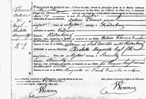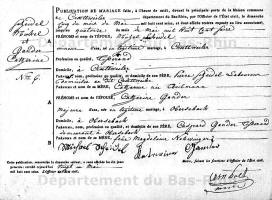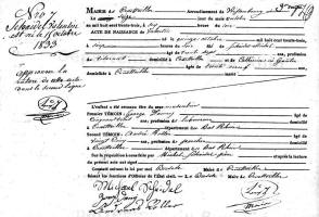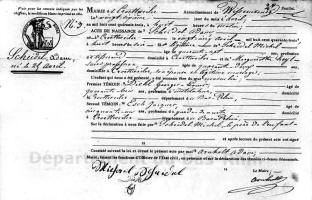 Michel "Michael" Scheidel and Elisabethe Marguerithe "Margaret" ( Heil) Thomas were announced their intention to marry on June 1, 1834, in the Village of Croettwiller, Croettwiller, Bas-Rhin (Upper Rhine), Grand Est, Alsace Region, France , and were married June 16, 1834, in the Village of Croettwiller, Croettwiller, Bas-Rhin (Upper Rhine), Grand Est, Alsace Region, France .