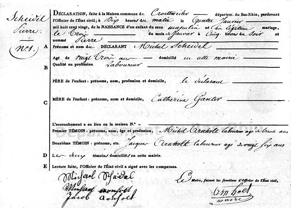 Pierre Scheidel was born January 4, 1820, in the Village of Croettwiller, Croettwiller, Bas-Rhin, Grand Est, Alsace, France.