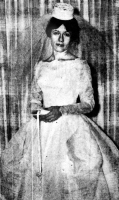 Miss Adelina Isela Duran and Glen Joseph Grams were married Saturday in St. Patrick's Catholic Church. The bride is the daughter of Mr. and Mrs. Frank Duran, 1715 E. Yandell Drive. Mr. Grams' parents are Mr. and Mrs. Harold Grams of Watertown. Wis. The Rev. Robert Gets performed the ceremony. The altar was decorated with baskets of white gladiolus interspersed with white carnations. The traditional wedding music was played by Mrs. A. L. Delgado. Given in marriage by her father, the bride wore a formal gown of white organza with Chantilly lace bodice. Her silk illusion veil is held by a Chantilly lace pill box. The bridal bouquet was a white orchid surrounded by orange blossoms. Miss Rosemary Valladalid was maid of honor and bridesmaids were Miss Irma Lopez, Miss Lo Ann Varela and Miss Pat Vaughn. They wore yellow sheaths of silk organza with matching bouffant overskirts. Their bouquets were yellow Chinese chrysanthemums. Mrs. Duran chose a coral lace sheath for her daughter's wedding. Her flowers were white carnations. Frank Duran Jr. was best man. Ushers were Barry Van Hook, William Holder, Earl Johnson, Ronald Lange and Arden Windingland. Following the ceremony, a reception was held in the Catholic Daughters' Hall. Out-of-town guests included Augstin Carrasco, grandfather of the bride, and Mr. and Mrs. Paul Haro, uncle and aunt of the bride all of Los Angeles, Calif. The bride was graduated from El Paso High School where she was a member of the Cayope Club and the Accordion Club. Mr. Grams is a graduate of Watertown High School. Mr. and Mrs. Grams will reside in El Paso following a wedding trip to Wisconsin. The bridegroom is serving with the U.S. Army at Ft. Bliss.