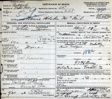 The 1910 U. S. Census taken on April 19, 1910, shows Wallace W. McNeal (age 30) born in Pennsylvania to Pennsylvania-born parents is an unmarried General Farm Farmer owning his own farm free of a mortgage and is living on Pine Street, Saltillo, Clay District, Huntingdon Co., PA. Living with him is his widowed mother: Nannie B. McNeal (age 81) born in Pennsylvania to Pennsylvania-born parents, with both children born to her still alive. Also living there are is a Baptist Minister and family.