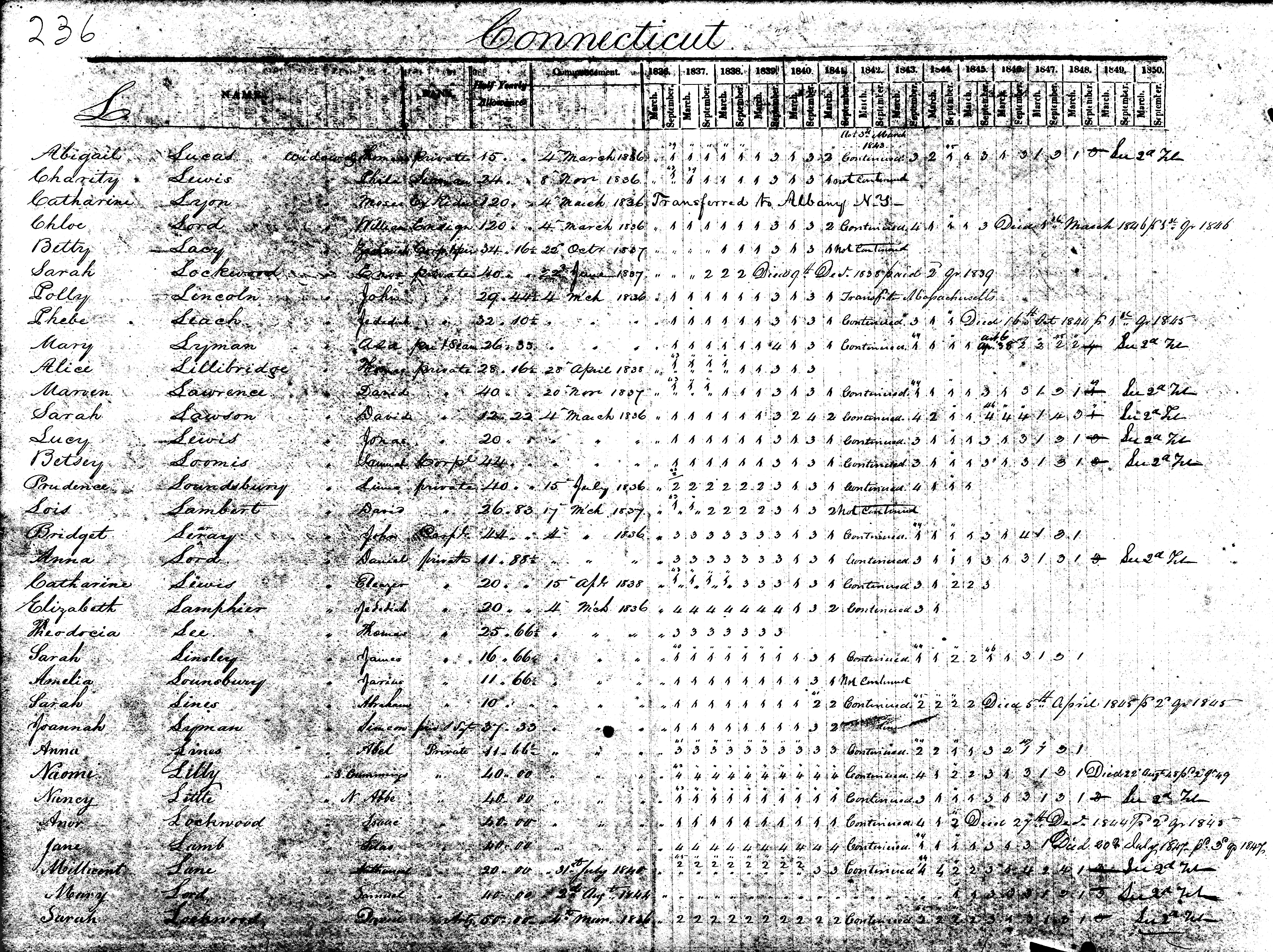 Nancy Moon was born 1765, in Windham, Windham Co., CT, and died January 18, 1852, at the Poor House, Windham, Windham Co., CT, at about age 87.