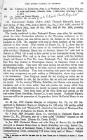 Page 95 THE HAZEN FAMILY IN AMERICA 95 309 viii. Tabitha; m. Nathaniel Abbe, b. at Windham, Conn., 13 July 1765, son of Isaac and Eunice (Church) Abbe. [Abbe-Abbey Genealogy (1916), p. 130.] 310 ix. Lizzie; m. David Wilson. 114. Nathaniel5 Hazen (John*, John8, Thomas2, Edward1), born in New Jersey, 17 Mar. 1745, died in Beaver Co., Pa., 3 Nov. 1835; married 27 Nov. 1768, Maky Bell, born 24 Oct. 1748, died 29 Dec. 1834, probably daughter of Isaac Bell. The family tradition* is that Nathaniel Hazen, soon after his marriage, joined the other Connecticut colonists in the Wyoming settlement on the Susquehanna River, but was driven out by the Indians at the time of the massacre in 1778. He, together with two or three brothers of his father, returned to New Jersey. [The records of Sussex Co., N. J., show that he was named an executor of the estate of his brother-in-law James Bell in 1778 and that "Nathaniel Hazen late of Newton, Sussex Co." sold land in Newton in 1793.] He is said to have served in the Continental Army during the Revolutionary War, and at its close to have moved with his brothers Joseph and Samuel to Fort Pitt (now Pittsburgh, Pa.). Not satisfied with Fort Pitt, they located in Washington County on Chartiers Creek in the Monongahela valley. They were very poor, having lost all when driven from the Wyoming valley, and here in the west, without convenient markets, their life was full of hardships. They took to making their grain into high wines, which they transported on pack saddles to Philadelphia, where they traded it for necessaries. Then Congress passed the Act levying an excise tax on high wines payable in coin, but the settlers had no coin and considered the tax unjust. In the ensuing Whiskey Rebellion, the Hazens were among the insurgents and at its close, rather than ask pardon for wrong which they did not admit they committed, the family in council decided to seek refuge m the wilderness. They went north of the Ohio River and opened up the tract where North Sewickley, Beaver Co., is now located. Nathaniel Hazen's farm was still in the possession of his grandson Smith McDaniel Hazen in the 1850*s. On 28 Jan. 1797 Charles Morgan of Allegheny Co., Pa., for i91 10s. conveyed to Nathaniel Hazen of Allegheny Co. 182 acres 143 perches called "Harcourt," [also read "Mancourt"], situated on the waters of Montours Run in Allegheny Co. [Allegheny Co. Deeds, 18: 463.] On 9 Sept. 1807 Benjamin Chew, Jr., conveyed to Nathaniel Hazen of Beaver Co., Pa., 200 acres, part of a tract called "Hatfield," situated on the Conequenessing Creek. [Beaver Co. Deeds, B: 83.] In Jan. 1821 Nathaniel Hazen and wife Mary of Beaver Co. for $1000 conveyed to Samuel Hazen land in North Sewickley township, Beaver Co., bordering on land of Nathaniel Hazen, J. Merrick, and James Hazen, and on Conequenessing Creek, containing 115 acres, being part of Hazen's Delight * This la the story as told for the most part by Isaac Hazen, son of Nathaniel, to Aaron L. Hazen about 18S7.