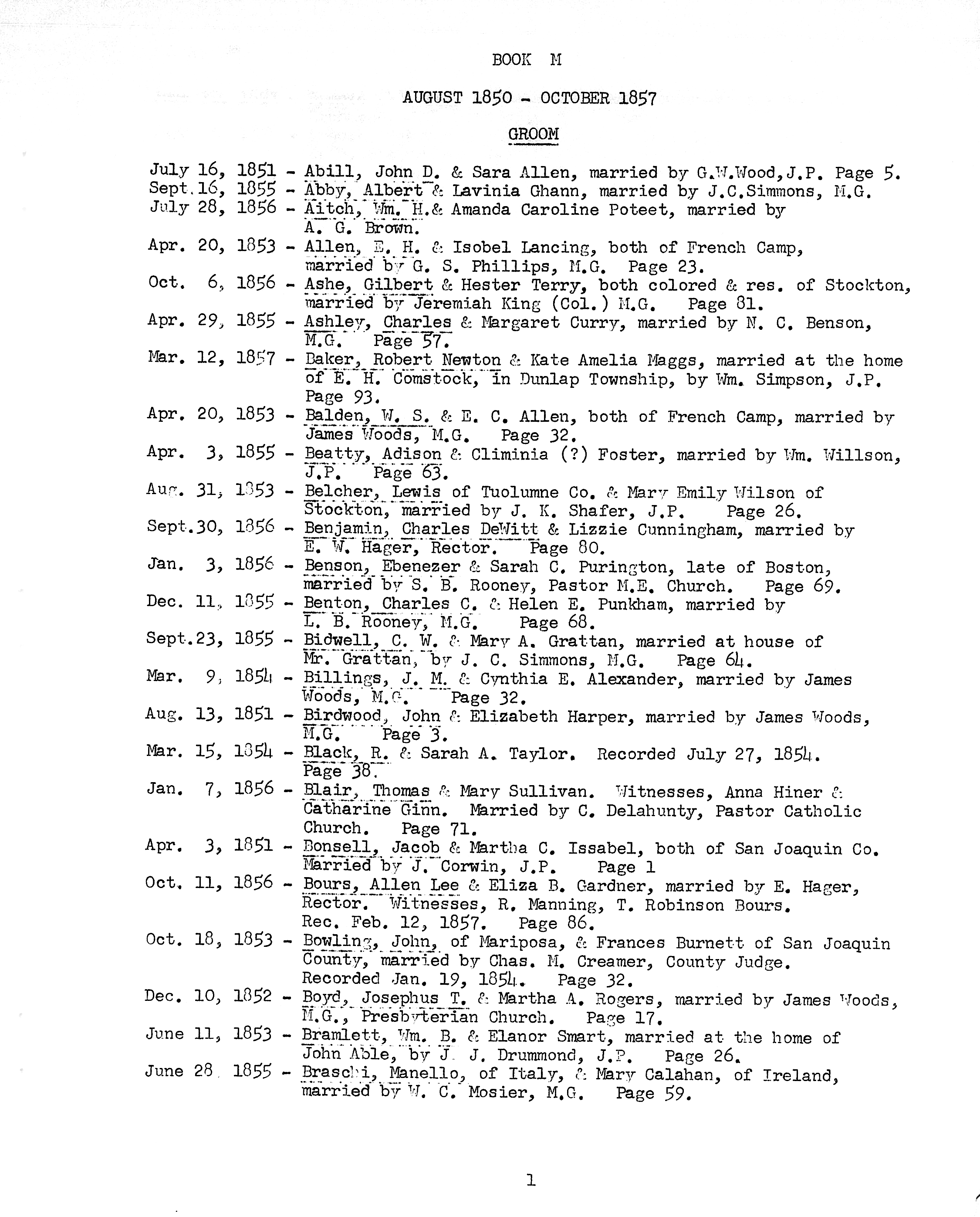 Albert Abbey and Lavinia Ghann were married September 16, 1855, in Stockton, San Joaquin Co., CA.