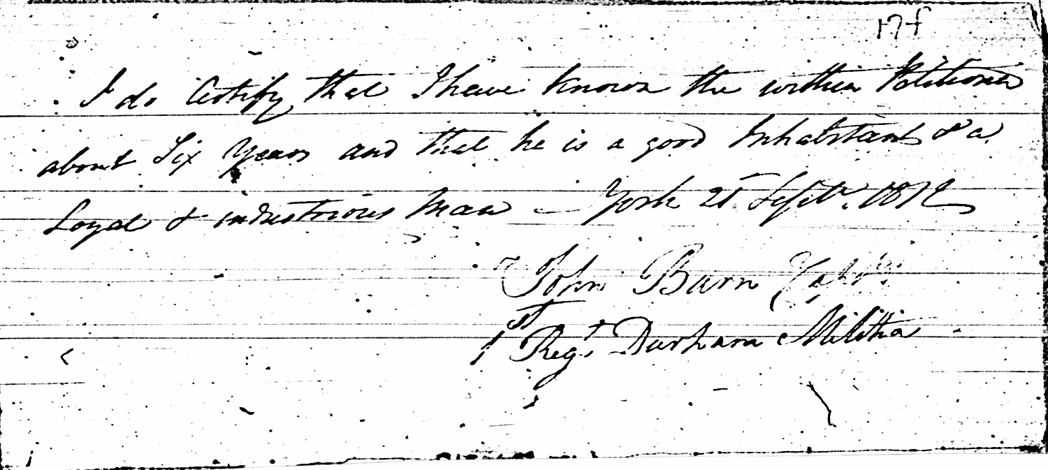 Nathaniel Abbey died about 1826 in Hope Twp., Durham Co., Upper Canada, at about age 51.