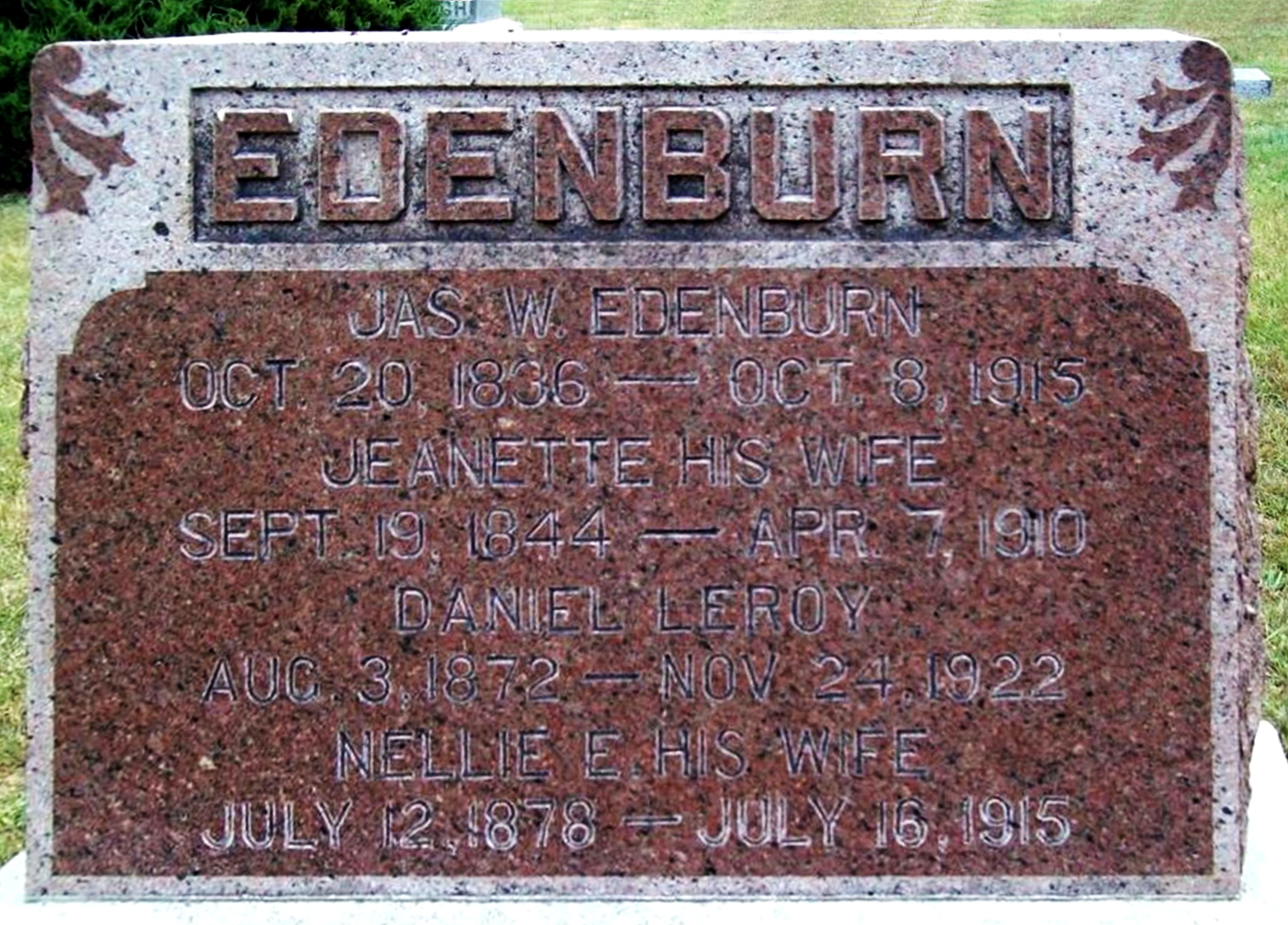 "Nellie" (Abbey) Edenburn are buried in Evergreen Cemetery, Superior, Nuckolls Co., NE.