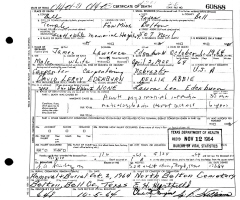 Superior Twp., Nuckolls Co., NE; Died October 1, 1964, at Scott and White