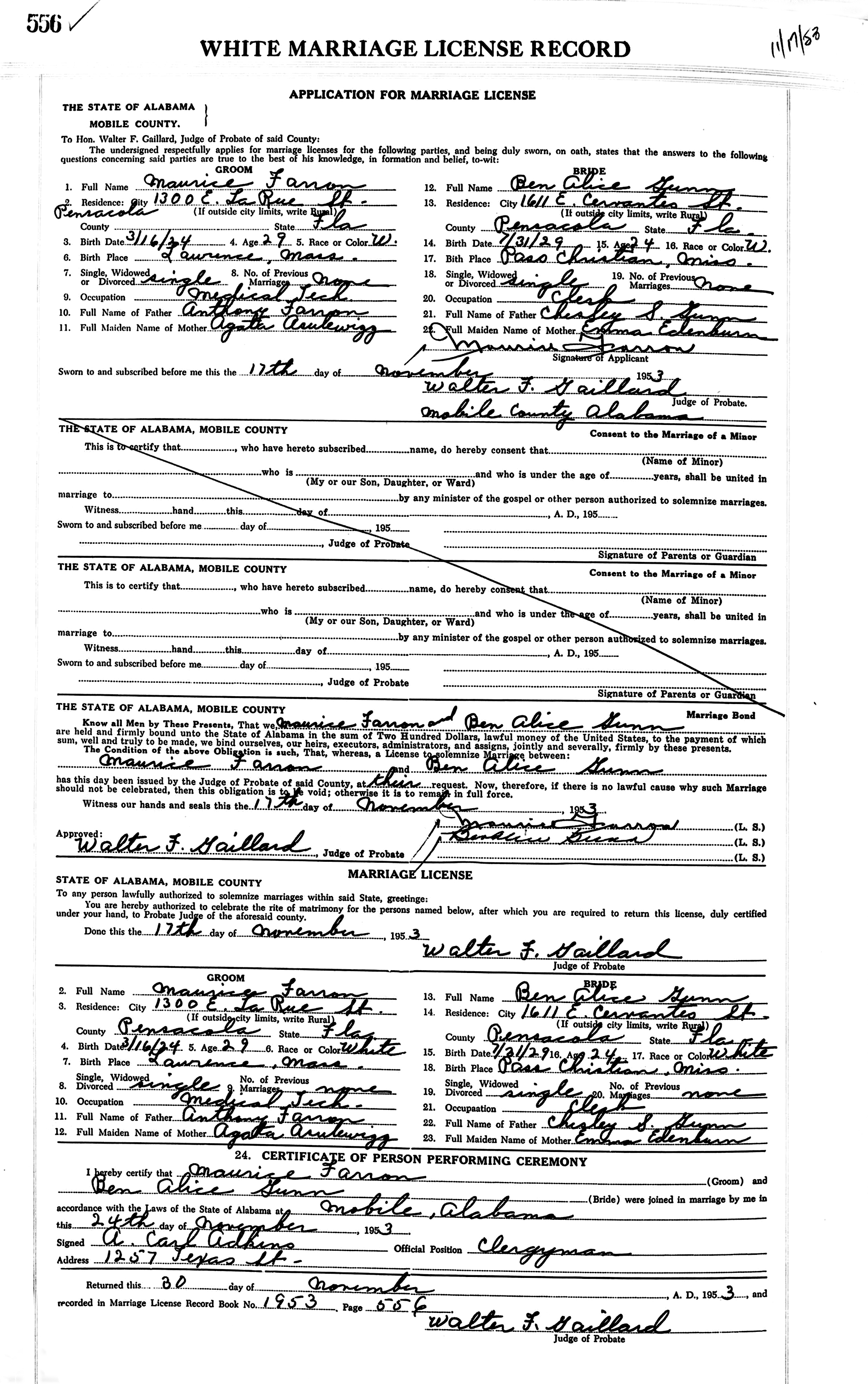 Maurice Farron, whose birth date is March 16, 1924. They are parents of two