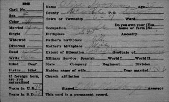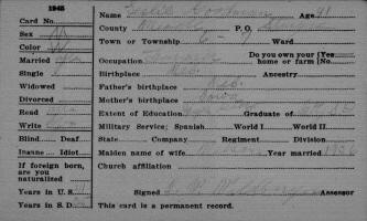 The 1945 South Dakota State Census U. S. Census taken in 1945 shows Olive Goodman (age 35) born in South Dakota Illinois and Wisconsin-born parents, and married in 1936, is a Housewife with Teachers College education, and is living in Townships 6 - 7, P. O. Box Sturgis, Meade Co., SD.