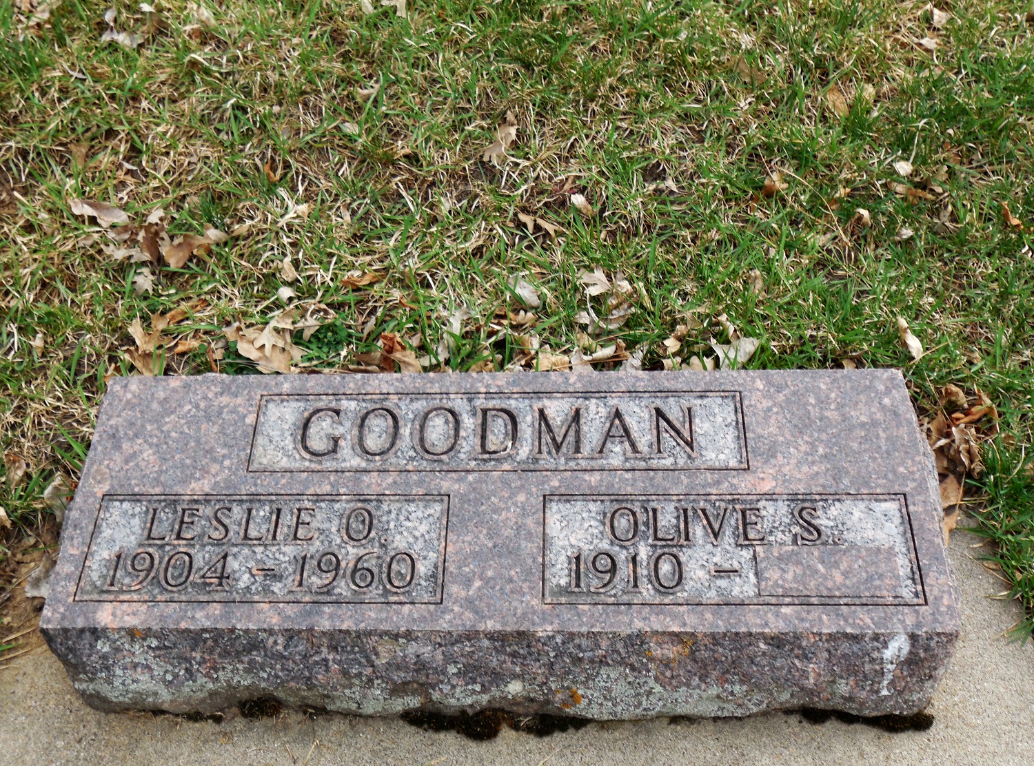 Leslie Osman Goodman is b uried in Bear Butte Cemetery, Sturgis, Meade Co., SD. Olive is not buried there. Thanks to Find-A-Grave for making this image available.