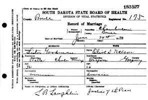 Leslie Osman Goodman and Olive Sophia Nelson were married June 24, 1936, in Chamberlain, Brule Co., SD.