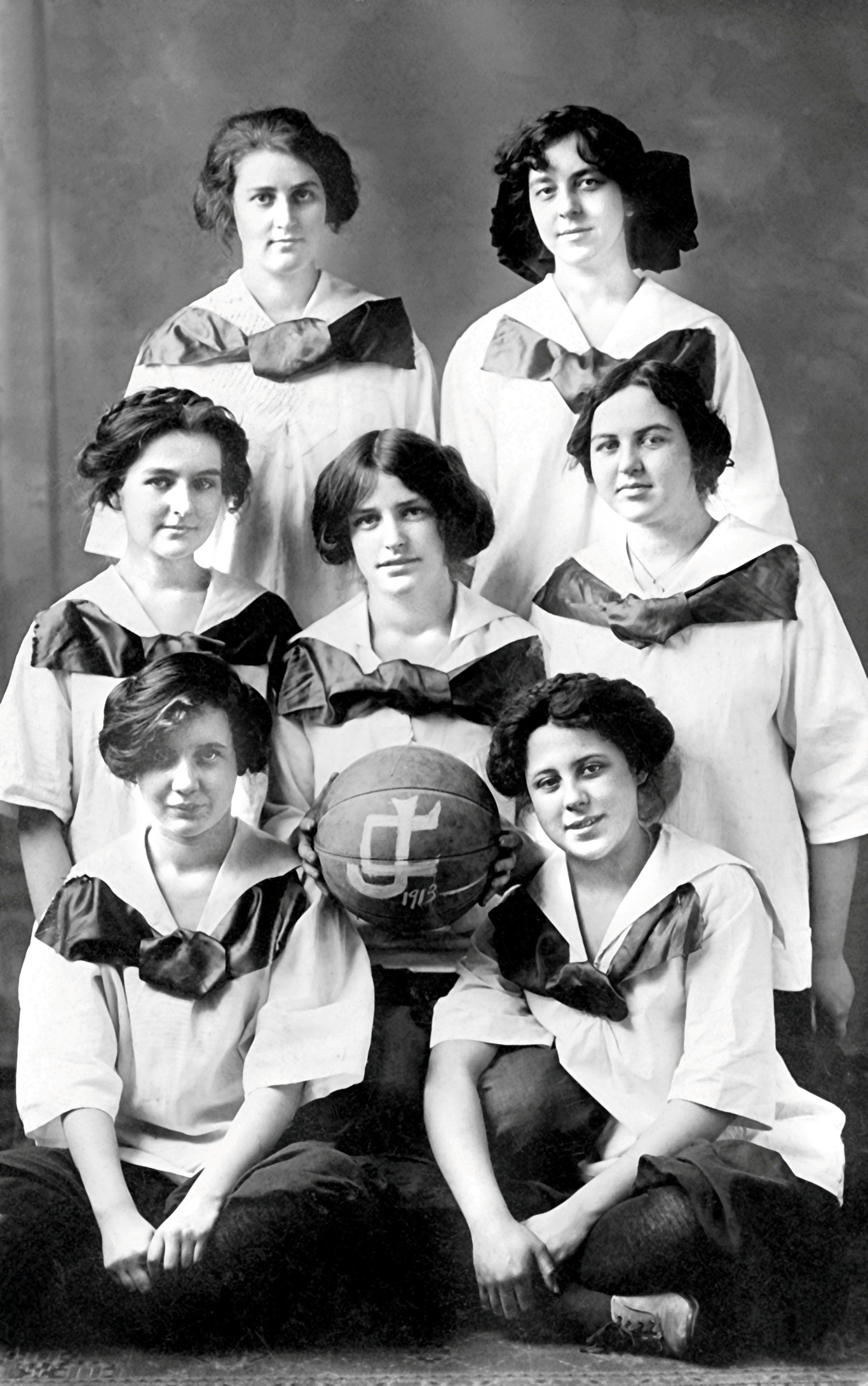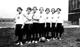 The Center school basketball team, Center, Oliver Co., ND, 1913. It is speculated that Alice Frances Herman is shown, possibly in the top row on the right. Photo courtesy of Kay Koslan.