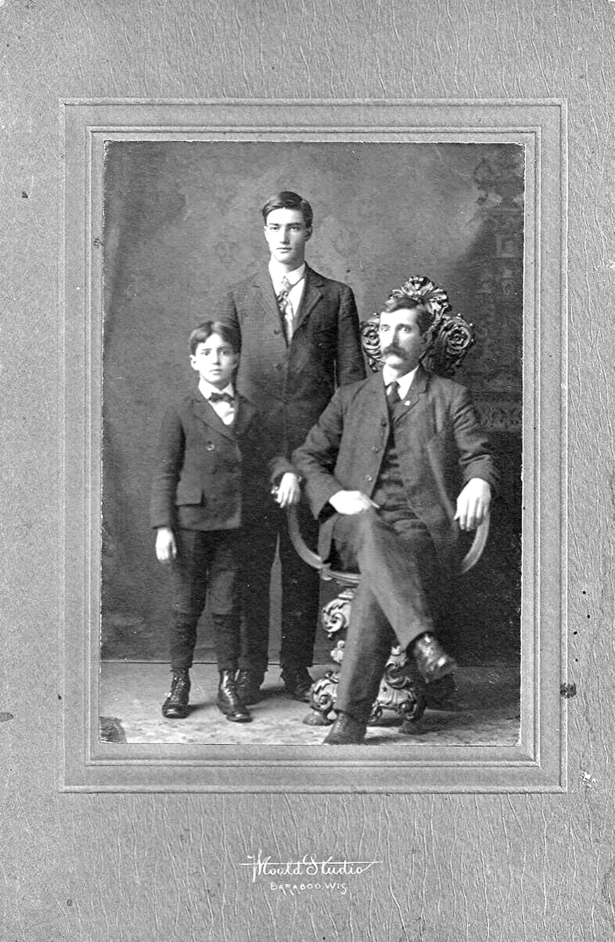 Oran Abbey, Sam Abbey and Charles Washington Abbey, Baraboo, Sauk Co., WI, about 1912. Photo courtesy of Kay Koslan.