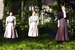The Herman group, Left to Right: Philomena Bertha "Minnie" Tavis, Alice Frances Herman, and John Leslie "Joe" Easton, North Dakota, about 1920. Photo courtesy of Kay Koslan.