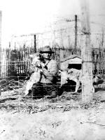 Charles or Peter Herman/ Herrmann farm, from left to right: Ted Herman, Alice Herman, unknown little girl, Carl Herman, and Wilfred Herman with the goat, 1912. Peter Herrmann had 5,000 sheep and lived near Glen Ullin, ND. Peter's son, Charles Herrmann, also had sheep and lived South East of Beulah, ND. Photo courtesy of Kay Koslan.