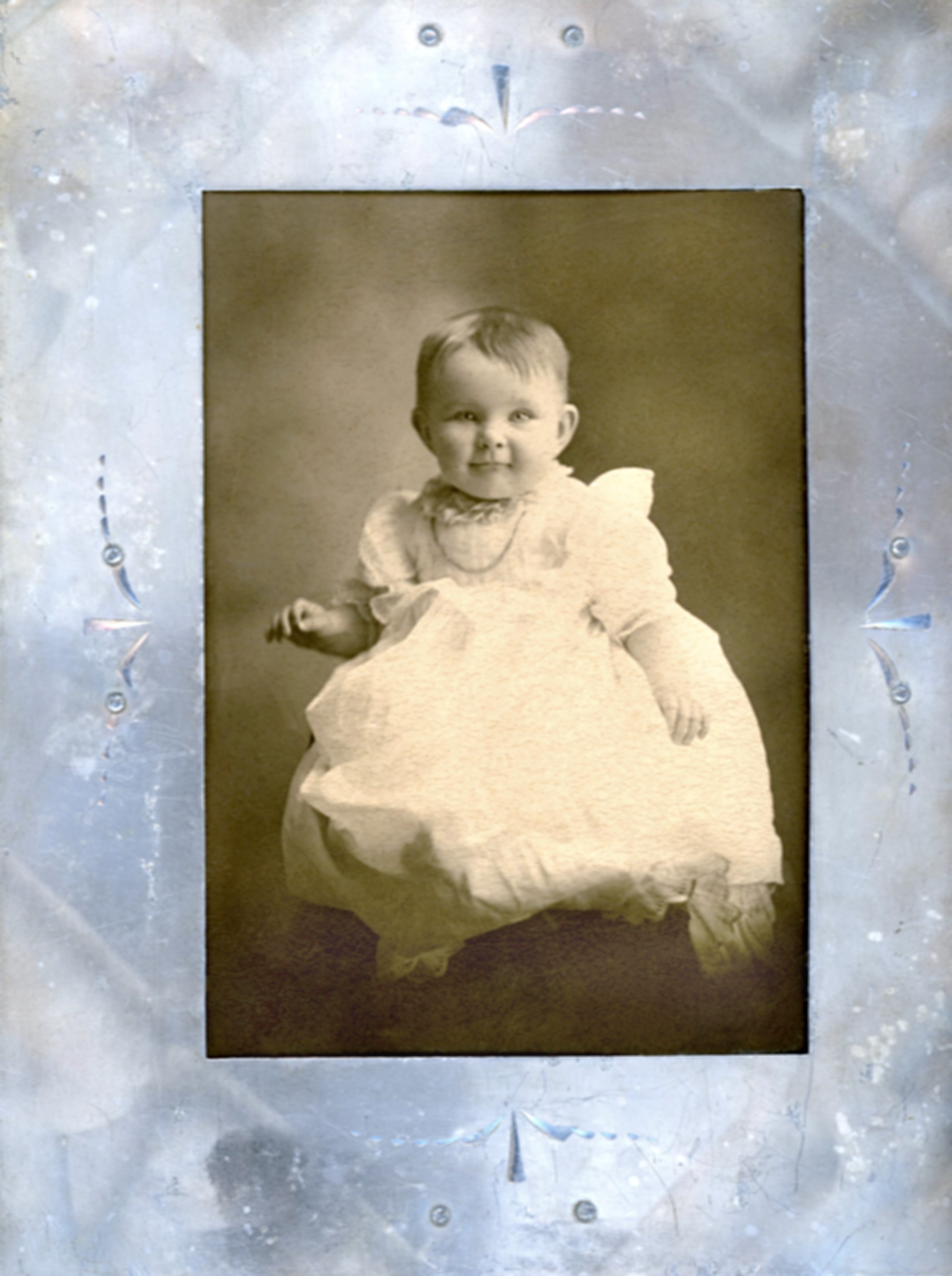 Alice Frances Herman at age 9 months . The two photos on the right are in the original frame from Peter Herman. Photos courtesy of Kay Koslan.