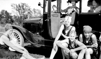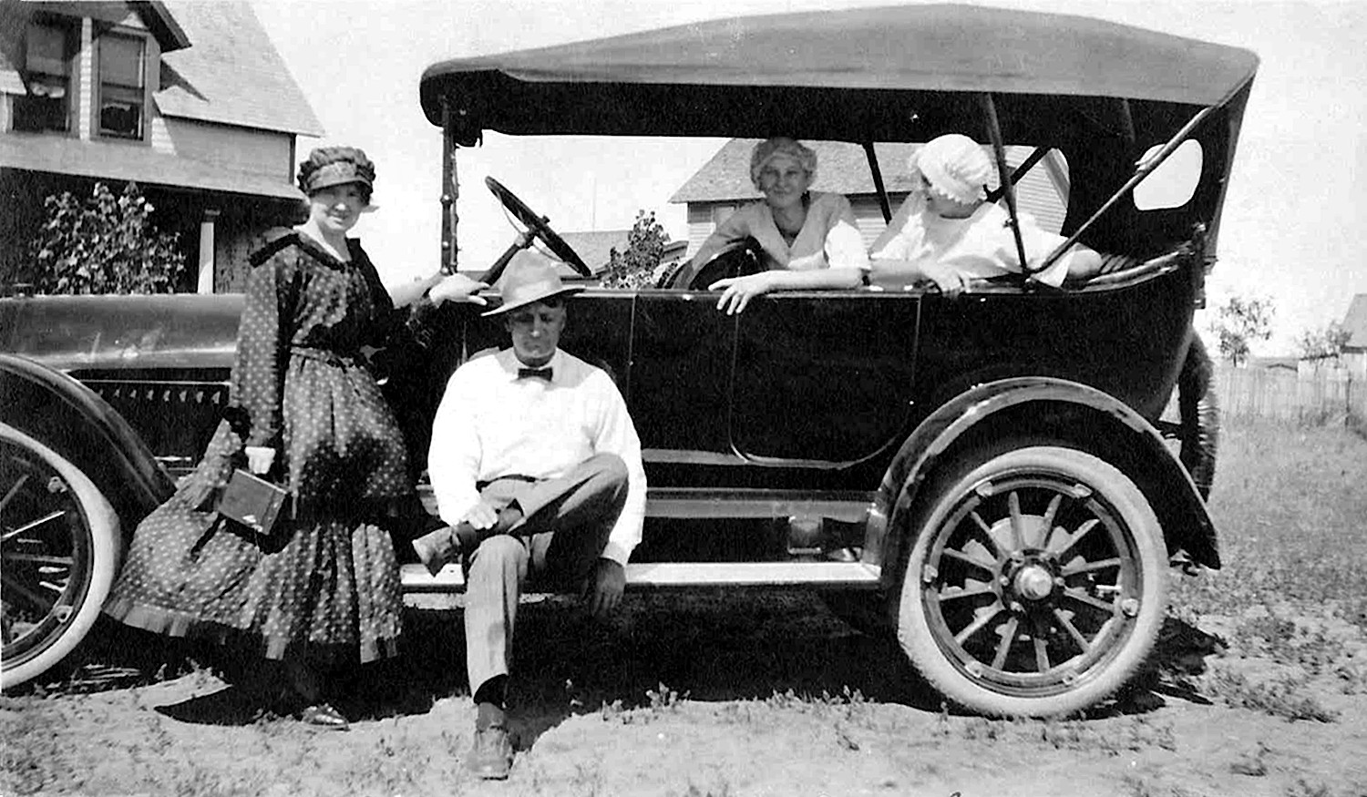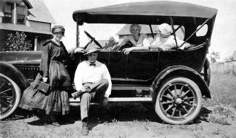 Alice Frances Herman with girl friends in car, ND, 1920. Alice Herman is the girl who is above the two girls on the ground on the right side. Photo courtesy of Kay Koslan.