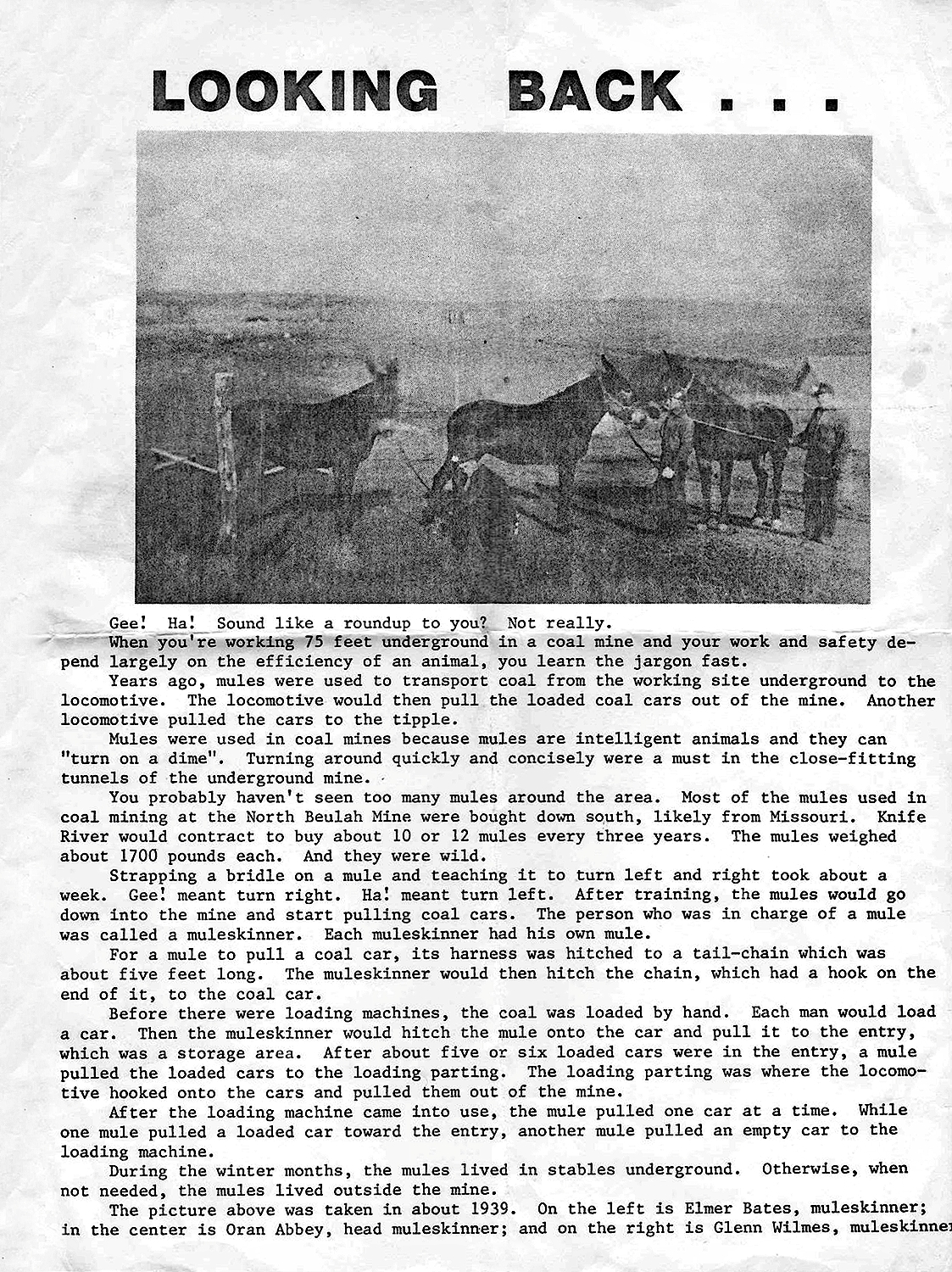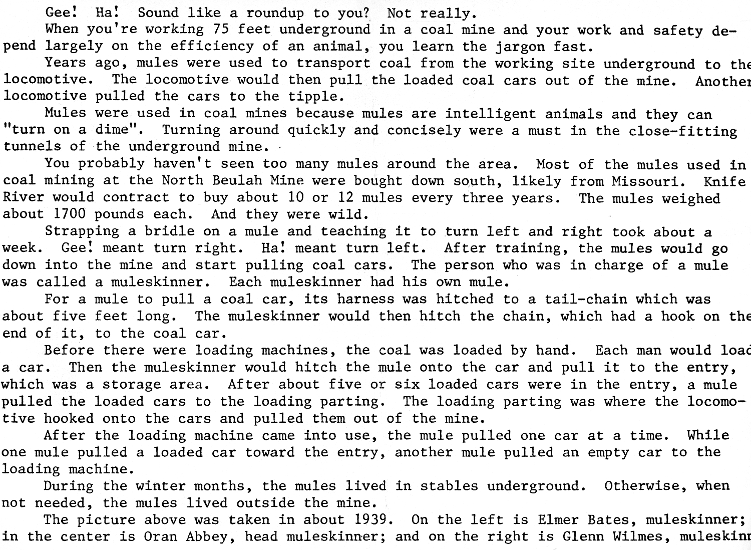 also employed as a mule skinner in the Knife River Coal Mine. Oran also operated