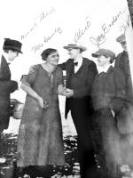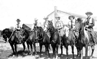 The "Big One Outfit" hit town Thursday night in a blizzard, and put on their show, "The Arizona Cowboy" in a very creditable manner. Every member of the caste did spendidly, but, without detracting from the credit due all of them, we can say that Besssie Koster, Ed. Boland and Oran Abbey should be on the big time. - they were GREAT, and we aint seen nothin' like it since '89. They deserver much better patronage than they received, for it was such a bad night many did not attend. Any way, the Big One Outfit made a hit and will be sure of a full house with a return engagement.
