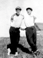 Oran Ralph Abbey, on the left, and his friend, James Audrey "Jimmy" Thompson, North Dakota, 1923. Photos courtesy of Kay Koslan.