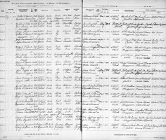 The 1900 U. S. Census taken on June 20, 1900, shows August F. Krause (age 44) born November 1855 in Germany to German-born parents and having emigrated in 1861 and not Naturalized is a Farmer owing his farm free of a mortgage and is living in Aldine Twp., Norton Co., KS. Living with him is his wife of 20 years, Mary J. Krause (age 40) born July 1859 in English Canada to English Canadian and English-born parents and having emigrated in 1860 with Unknown Naturalization, with 9 of the 11 children born to her still alive. Also living there are his children, all born in Kansas except for Alfred, who was born in Wisconsin: Effie L. Krause (age 19) born March 1881, shown as married less than one year; Elda E. Krause (age 17) born May 1883; Belle E. Krause (age 14) born November 1885; Oscar O. Krause (age 11) born November 1888; Alfred O. Krause (age 9) born October 1890; Wallace A. Krause (age 7) born September 1892; Jason R. Krause (age 6) born March 1894; Nellie A. Krause (age 4) born February 1896; and Minnie L. Krause (age 2) born May 1898.