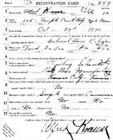The WWI Draft Registration Report taken on June 5, 1917, shows Alfred Krause (age 26) born October 23, 1890, in Fond du Lac, WI, is an unmarried Traveling Salesman for Peete Bros. Manufacturing Co. of Kansas City, KS. He is living at 565 Temple Court Building, Minneapolis, MN. Medium height, medium build, blue eyes and light brown hair.