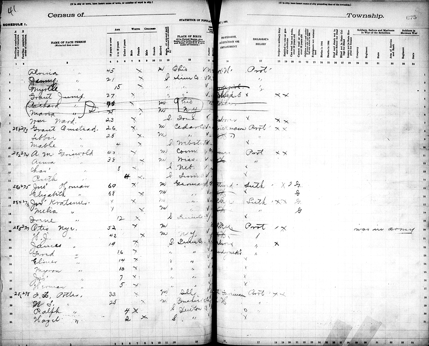 The 1895 Kansas State Census taken on March 1, 1895, shows August Krause (age 49) born in Germany and having moved from Wisconsin is a Farmer living in Aldine Twp., Norton Co., KS. Living with him are: Mary J. Krouse (age 35) born in Canada and having moved from Wisconsin; Effie Krause (age 14) born in Norton Co., KS; Elda Krause (age 11) born in Norton Co., KS; Belle Krause (age 9) born in Norton Co., KS; Oscar Krause (age 6) born in Norton Co., KS; Alfred Krause (age 4) born in Norton Co., KS; Wallace Krause (age 2) born in Norton Co., KS; and Ralph Krause (age 1) born in Norton Co., KS.